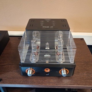 Het gaat hier om een geintegreerde buizen versterker uit de Triode 25 serie in de kleur zwart.
