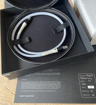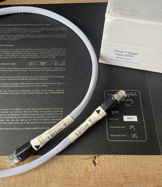Te koop aangeboden een in nieuwstaat verkerende streamingkabel van Chord Company. De Sarum T ethernetkabel is een high-end kabel en staat bekend om het gebruik van geavanceerde materialen en technologieën, zoals Taylon-isolatie, Super ARAY-geleidergeometrie, verzilverde geleiders en nauwkeurig gemaakte RJ45-connectoren.