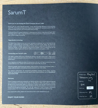 De Sarum T streamingkabel biedt een aanzienlijke verbetering in geluidskwaliteit ten opzichte van standaard of zelfs andere high-end netwerkkabels; een meer gedetailleerd, coherent en muzikaal geluid, waarbij voorheen onopgemerkte nuances en details in de muziek hoorbaar worden. De kabel helpt ruis te verminderen en creëert een groter, dieper klankbeeld.