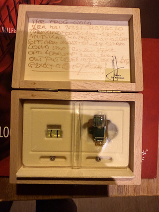 Voor de analoge liefhebber: Van Den Hul The Frog Gold, nieuw en ongebruikt met private garantie. Schitterend element met 24k gouden spoelen en Van Den Hul-S1 naald op een boron cantilever. Levensduur naald: 4000+ uren. Output: 0,75 mV. Biedt een prachtig, driedimensionaal geluidsbeeld met de detaillering waar Van Den Hul om bekend staat. Realistisch en stil in stille passages. Service en reparatie mogelijk voor lange levensduur.